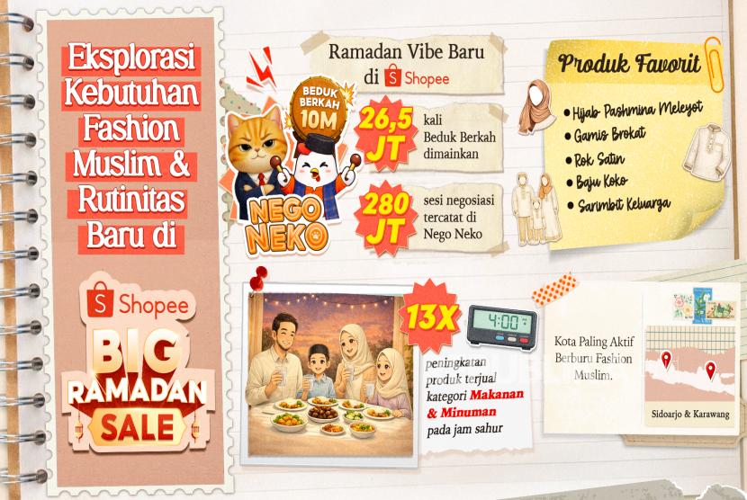 UMKM News.CO.ID, JAKARTA - Kemeriahan Shopee Big Ramadan Sale yang telah berlangsung lebih dari satu bulan tidak hanya menghadirkan rangkaian penawaran menarik, tetapi juga merekam antusiasme tinggi pengguna dalam merayakan bulan suci secara lebih berwarna. Lebih dari sekadar ajang berburu promo kebutuhan pokok, Shopee juga mencatatkan sederet tren fashion yang mencerminkan ekspresi diri masyarakat, sekaligus menjadi destinasi hiburan digital melalui berbagai fitur interaktif.