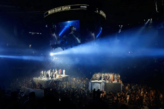Di Madison Square Garden, Ye menggabungkan dua dunia yang ia geluti: musik dan fashion. Dalam satu panggung, ia memutar album The Life of Pablo sekaligus menampilkan koleksi Yeezy Season 3. Ratusan model berdiri di atas platform, menciptakan visual yang sangat kuat dan unik. Penonton tidak hanya datang untuk mendengar musik, tetapi juga menyaksikan presentasi mode dalam skala besar. Konsep ini membuktikan bahwa konser bisa menjadi ruang multidisiplin yang menggabungkan berbagai bentuk seni. -