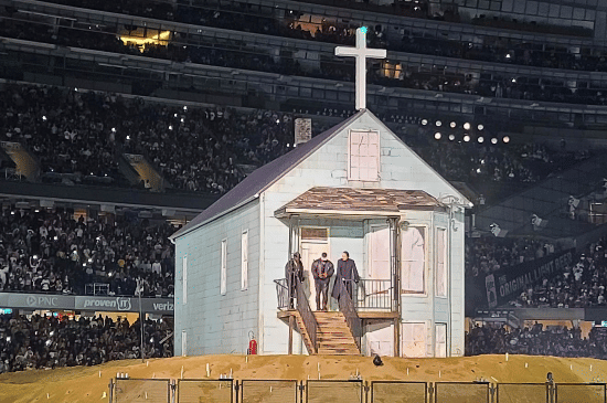 Di Soldier Field, Ye membawa pendekatan yang lebih personal dengan membangun replika rumah masa kecilnya di tengah stadion. Rumah kecil tersebut menjadi simbol perjalanan hidup dan kariernya. Dalam pertunjukan ini, elemen visual tidak lagi hanya tentang kemegahan, tetapi juga tentang emosi dan nostalgia. Penonton diajak masuk ke dalam cerita pribadi Ye, menjadikan pengalaman konser terasa lebih intim meski berlangsung di venue besar. -