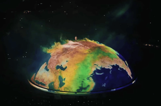 Inilah panggung yang saat ini viral dan menjadi perbincangan luas. Dalam konser di SoFi Stadium, Ye tampil di atas bola raksasa bertajuk “Giant World” yang menyerupai planet Bumi dan berputar secara perlahan. Dengan efek asap, pencahayaan dramatis, serta visual yang terus berubah, panggung ini menciptakan ilusi bahwa ia sedang berdiri di atas dunia. Konsepnya sederhana namun eksekusinya luar biasa, menghadirkan pengalaman yang terasa seperti perpaduan konser, film, dan instalasi seni.