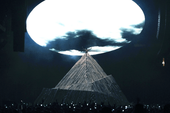 Panggung dalam tur ini menjadi salah satu yang paling ikonik dalam sejarah konser modern. Ye menghadirkan “Mount Yeezus”, sebuah gunung raksasa setinggi puluhan kaki yang berdiri megah di tengah arena. Selain itu, visual yang ditampilkan sarat dengan simbol religius dan spiritual, termasuk kemunculan figur menyerupai Yesus di atas panggung. Kombinasi ini menciptakan suasana yang terasa seperti ritual, bukan sekadar konser. Pengalaman yang dihadirkan begitu intens dan emosional, menjadikan tur ini sering disebut sebagai salah satu yang paling berani secara artistik. -
